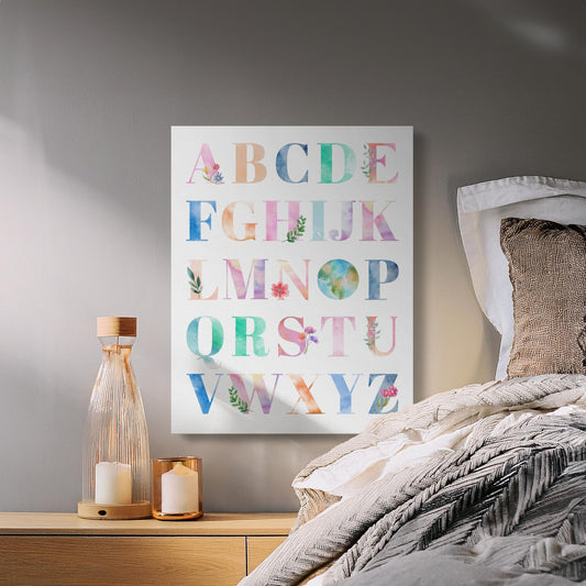 Floral Watercolor Alphabet Nursery Canvas Wraps