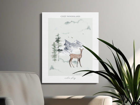 Cozy Woodland Deer and Mountains Nursery Canvas Wraps