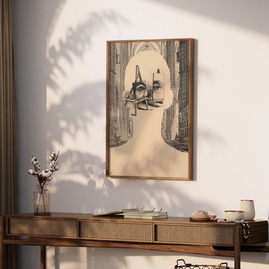 Surrealist Portrait with Easels and Cathedral Art Posters