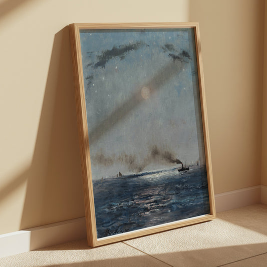 Boats on the Ocean at Night with Full Moon Posters