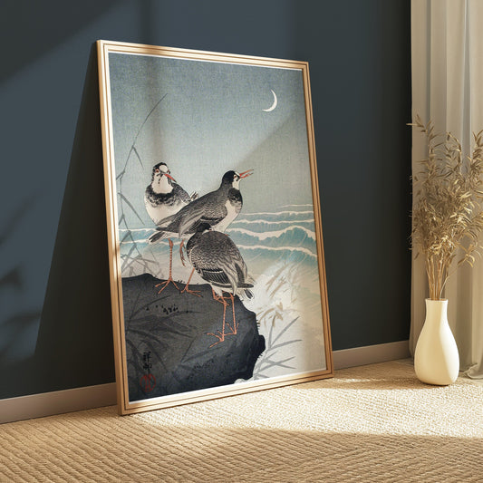 Japanese Style Seaside Birds Crescent Moon Posters