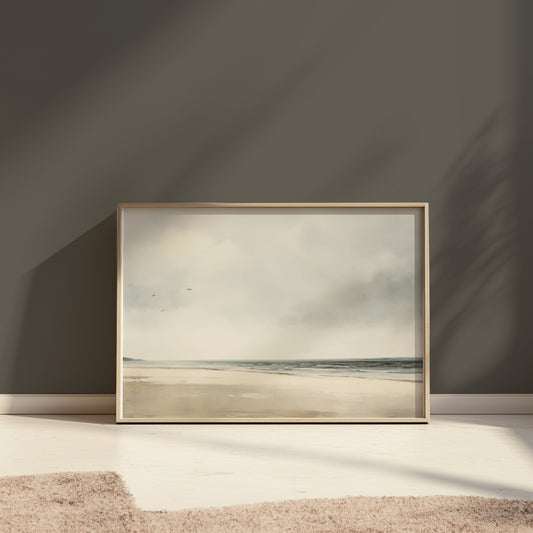 Peaceful Beach Landscape with Overcast Sky Posters
