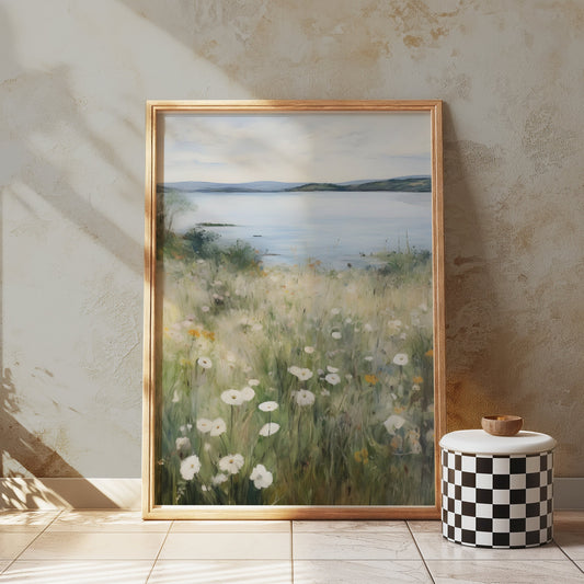 Wildflower Meadow by a Serene Lakeside View Posters