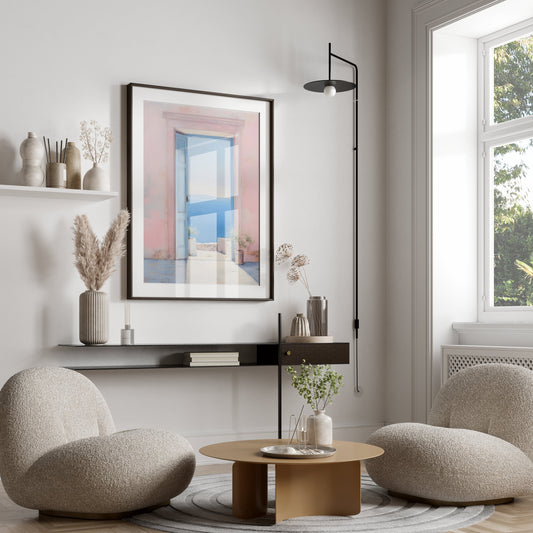 Serene Ocean View Through Pastel Open Door Posters