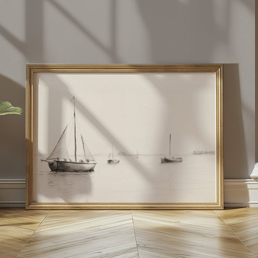 Minimalist Sailboats at Sea in Calm Waters Posters