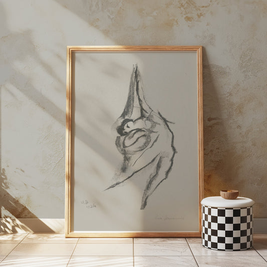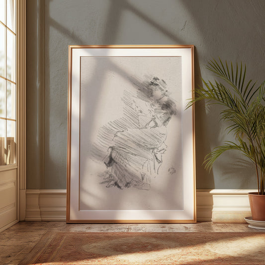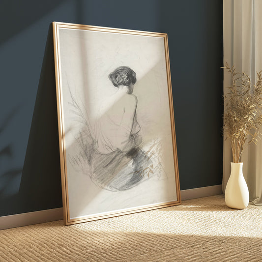 Charcoal Sketch of Woman from Behind Art Print Posters