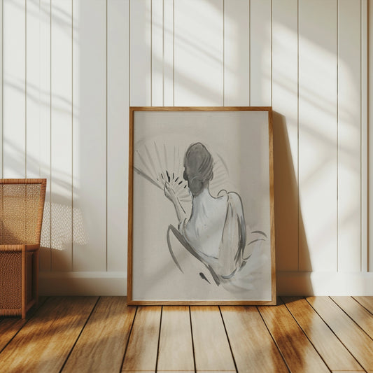 Elegant Back View Painting of Woman with Fan Posters