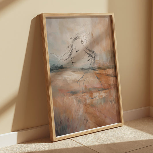 Abstract Dreamy Landscape with Female Face Posters
