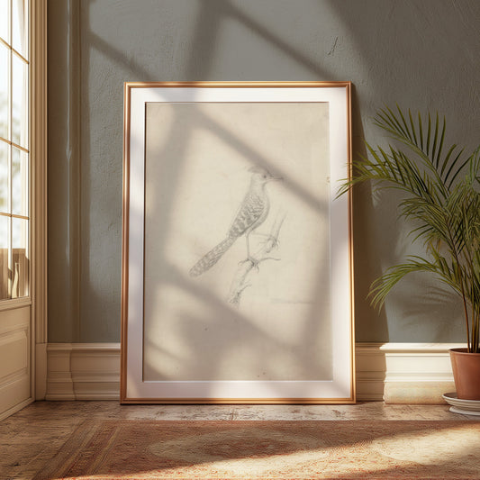 Beautiful Artistic Sketch of Bird on Branch Posters