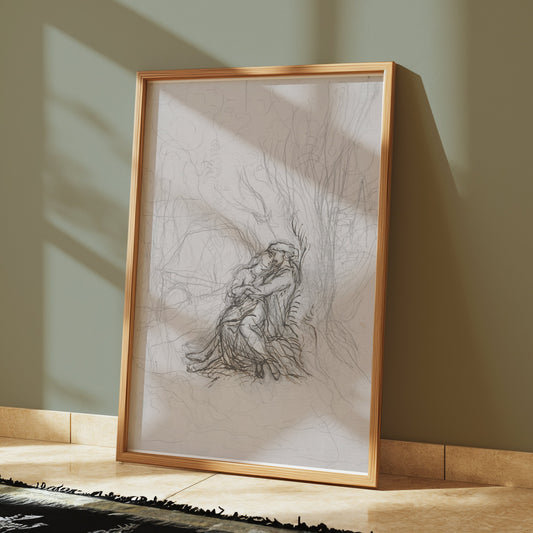 Dreamy Abstract Couple Embrace Art Sketch Drawing Posters