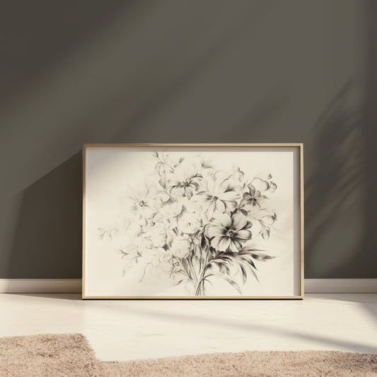 Elegant Bouquet of Flowers Art Sketch Posters