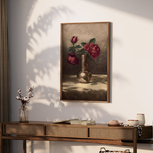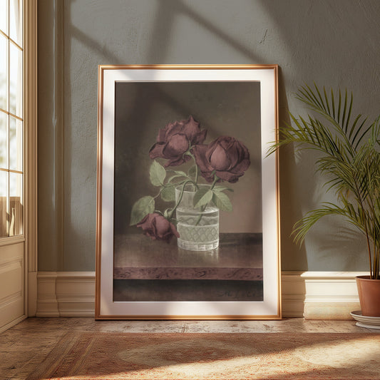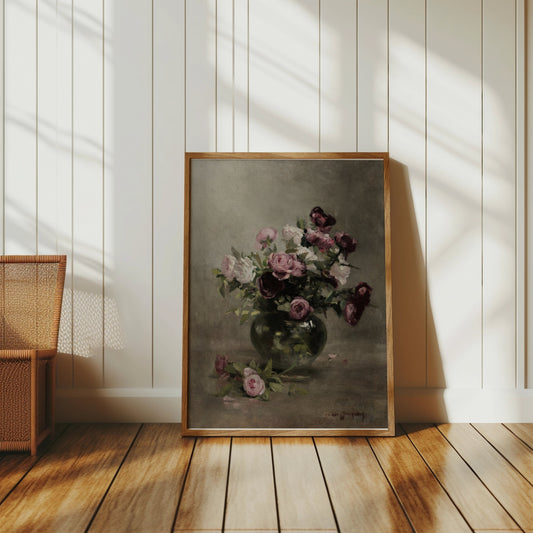 Beautiful Vintage Roses in Vase Still Life Art Posters