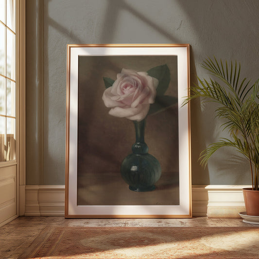 Elegant Still Life of Pink Rose in Green Vase Posters