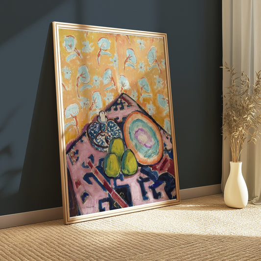 Vibrant Artistic Still Life with Pears and Patterns Posters