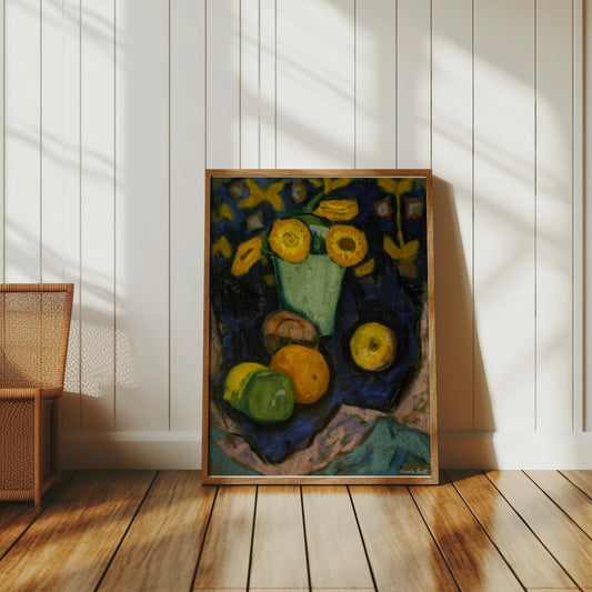 Colorful Still Life with Sunflowers and Fruit Posters