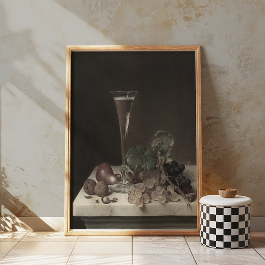 Elegant Still Life with Fruit and Wine Glass Posters