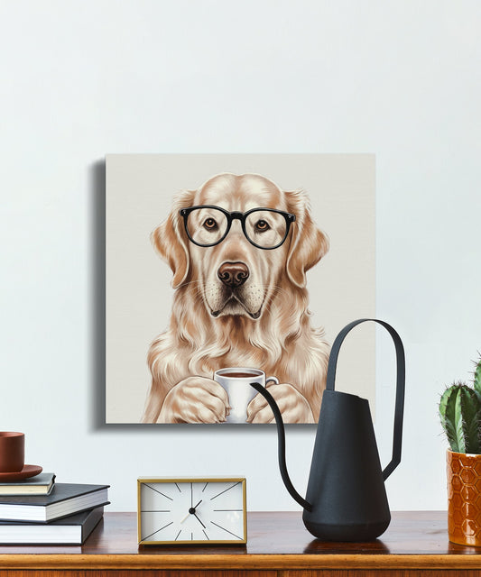 Adorable Golden Retriever With Glasses and Coffee Canvas Wraps