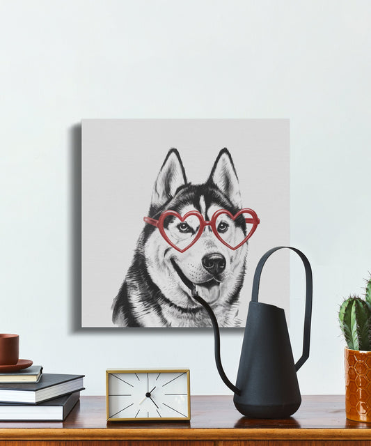 Siberian Husky Sketch with Heart Glasses Canvas Wraps