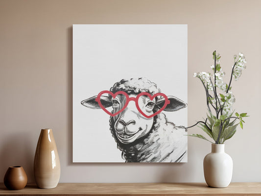 Sketched Sheep in Heart Glasses Wall Art Canvas Wraps