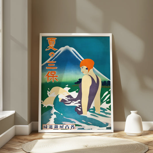 Retro Japanese Art of Woman in Swimsuit Vintage Posters