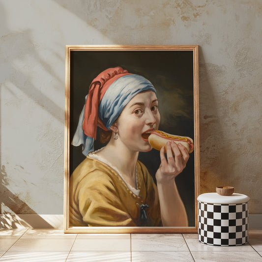 Girl with a Hotdog Painting Funny Parody Art Posters