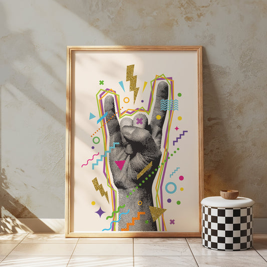 Rock On Hand Gesture Colorful Abstract Art Posters