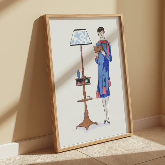 Stylish Retro Woman Reading Next to a Lamp Posters