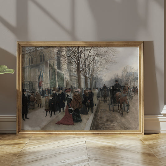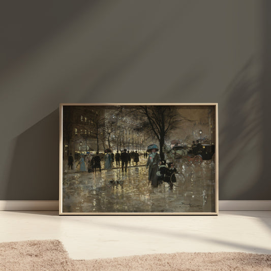 Elegant Winter Street Scene Vintage Art Posters