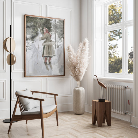 Classic Winter Skiing Scene in the Woods Posters