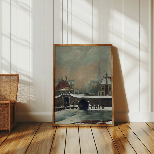Scenic Winter Town with Snow and Bridge View Posters