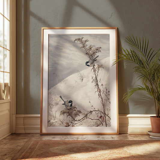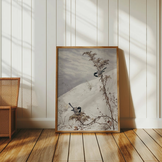 Winter Birds on Snowy Branch Scene Posters