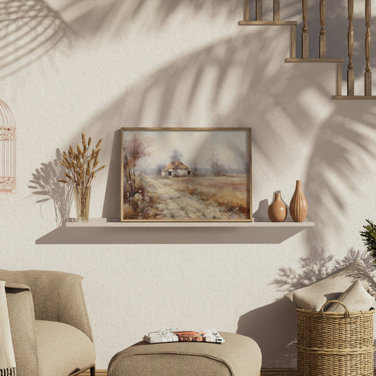 Serene Countryside Abandoned House Pathway Art Posters